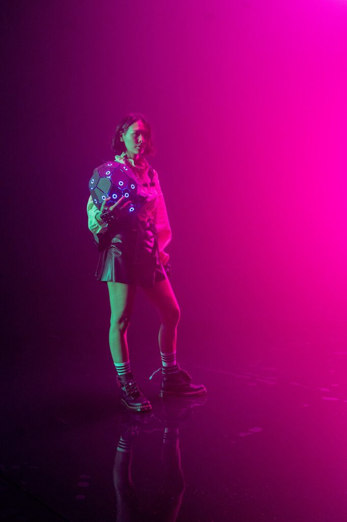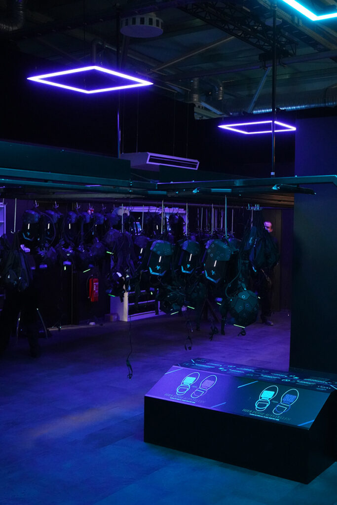 Most interesting part was the design of the suit. With the genius help of Moritz Waldemeyer and Matthias Ocklenburg we found the solution for the backpack and helmet with the lightened LEDs which are both trackers and an important design part.